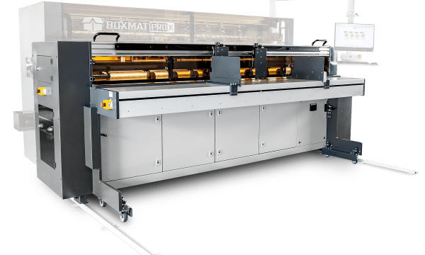 La JETBOX 1600 est une imprimante jet d’encre haute résolution spécialement conçue pour s’intégrer aux machines Boxmat PRO X et Boxmat HD. Elle permet l’impression rapide de textes, logos, pictogrammes ou codes-barres directement sur carton ondulé, avec une commande intégrée via l’interface tactile HMI.